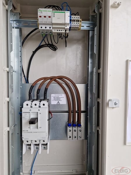 Główny wyłącznik prądu GWP 160A odcina dopływ prądu elektrycznego do wszystkich obwodów budynku lub zabezpieczanych maszyn z opcją wyłączenia awaryjnego. Sterowanie elementem wykonawczym rozdzielnicy odbywa się za pomocą przycisku PWP1 wyposażonego w sygnalizację stanu pracy rozdzielnicy.