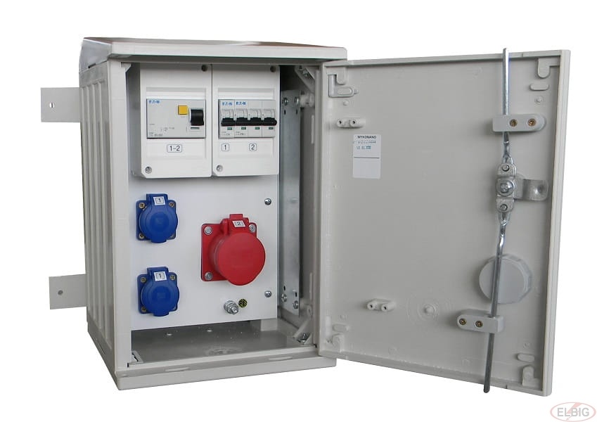 Rozdzielnica budowlana przeznaczona do zasilania np. budowy lub działki kempingowej. Rozdzielnica wykonana jest na bazie obudowy z poliestru termoutwardzalnego, który posiada najlepsze właściwości elektryczne i mechaniczne. Dzięki wysokiej odporności na promieniowanie UV nie jest wrażliwa na długotrwałe działanie promieni słonecznych tak jak PVC lub ABS.
