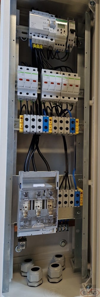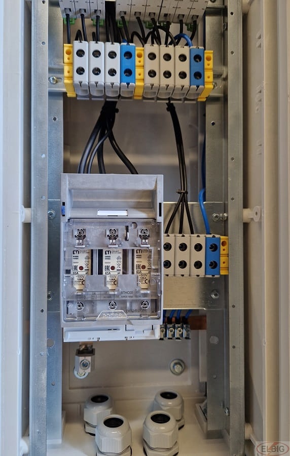 - Obwody odpływowe: W obwodach odpływowych zastosowano rozłączniki bezpiecznikowe na wkładki 10x38, co zapewnia niezawodność i bezpieczeństwo użytkowania.
