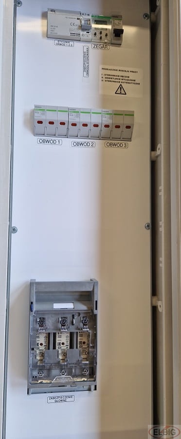 - Automatyczne sterowanie: Szafa została wyposażona w astronomiczny zegar sterujący, co umożliwia automatyczne załączanie i wyłączanie obwodów oświetleniowych w zależności od pory dnia. Dzięki temu zyskujesz większą kontrolę nad systemem oświetleniowym i oszczędności energii.